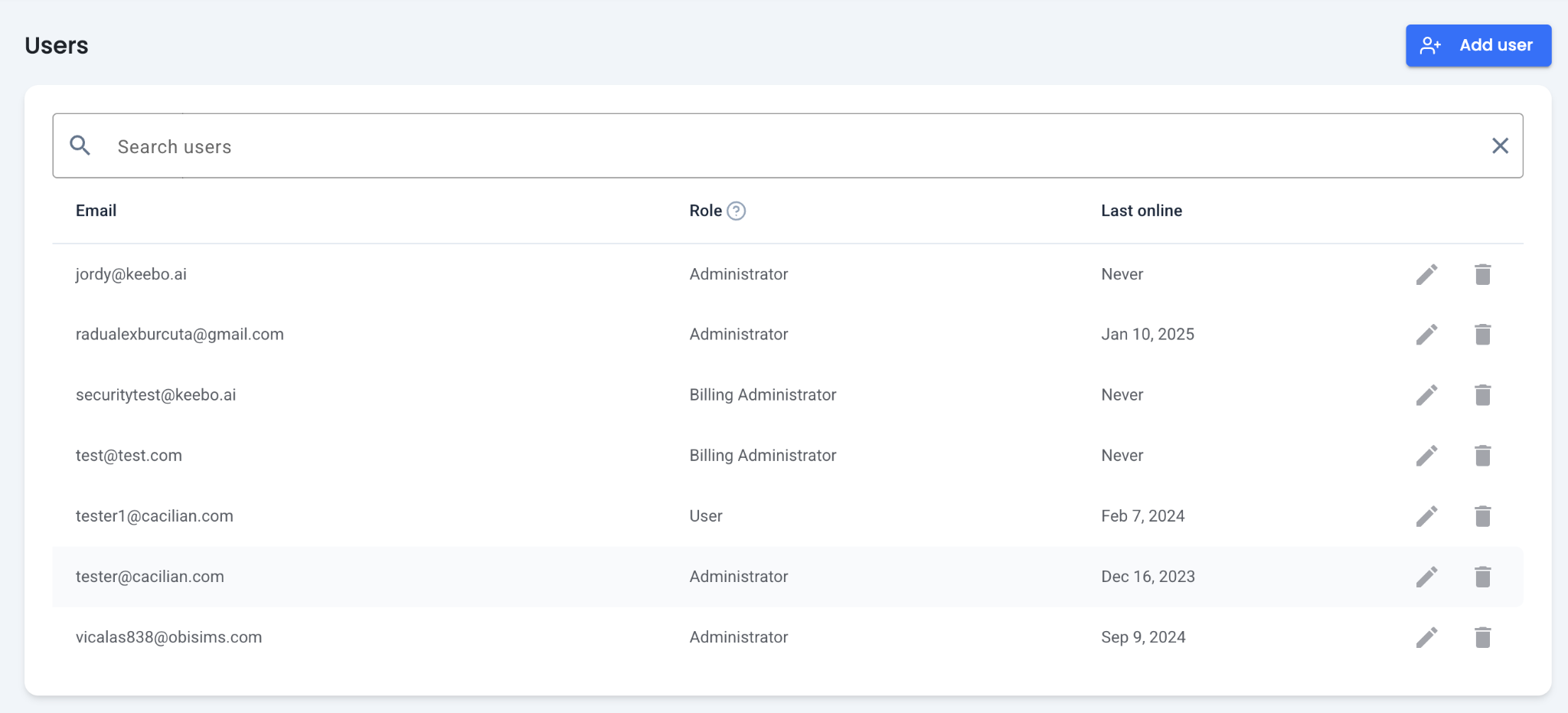 - Edit an existing user — Click the edit icon next to a user's entry to change their role.